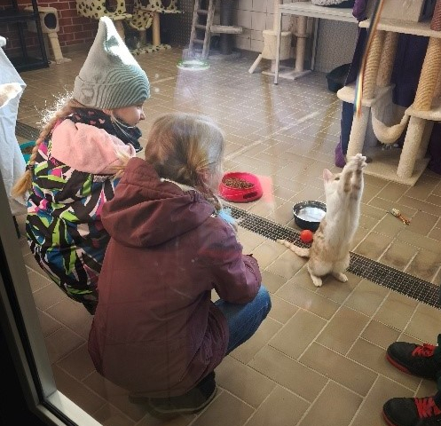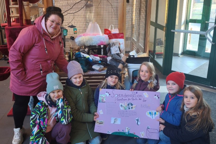 Für unsere Spendenaktion haben wir Plakate gebastelt und unsere Eltern um Unterstützung gebeten. Es wurden Spielzeuge, Futter und – Deckenspenden für die Tiere gesammelt. Am 20.01.26 konnten wir unsere gesammelten Spenden persönlich im Tierheim abgeben. Die Freude der MitarbeiterInnen war groß. Wir durften einige Tiere besuchen und es wurde uns noch viel über die Tiere erzählt.