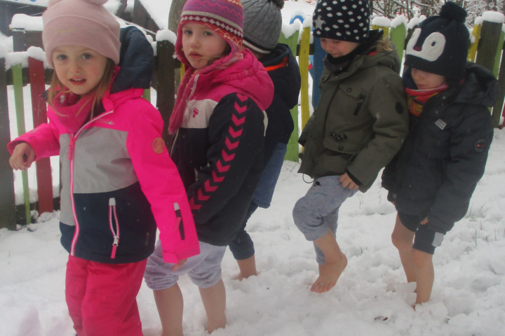Der Januar erfreute uns mit Schnee und so nutzten die Kinder der Spatzengruppe sogleich die Gelegenheit an ihrem „Kneipp-Tag“ das Schneetreten nach Sebastian Kneipp mit Ihren Erzieherinnen durchzuführen.