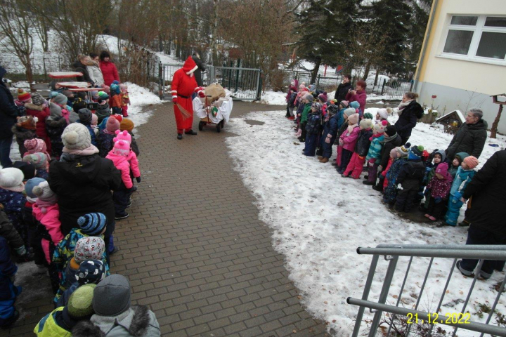 Es war ein kalter Dezembertag, es lag sogar noch Schnee, als der Weihnachtsmann den Weg in unsere Kita fand.