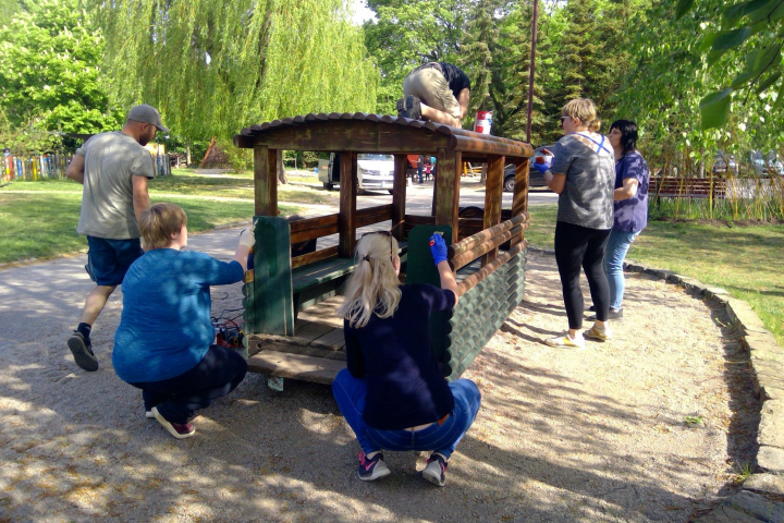 Im Frühlingsmonat Mai versammelten sich an zwei Nachmittagen viele fleißige Eltern und Erzieher in unserem Gartengelände, um endlich wieder gemeinsam so manchem Spielgerät eine Frischekur zu verleihen.