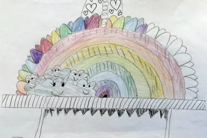 Über die nächsten Monate wurden alle Kinder der Schule partizipiert. Erst brachte der Kinderrat die Idee in die Klassen, dann durften alle Kinder die wollten eine Idee zu Papier bringen und nach einer Ausstellung der Entwürfe wurde abgestimmt. Der Siegerentwurf stammt von E. aus einer 3. Klasse. Gleichzeitig kam natürlich die Frage nach der Umsetzung und der Finanzierung auf.