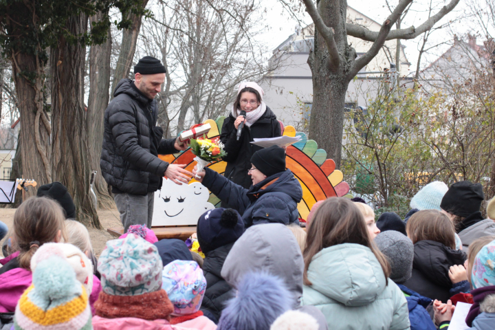 Am 8.Januar 2026 fand die feierliche Einweihung statt. Mit dabei war natürlich der Erbauer der Bank- Holzkünstler Lukas Rex von der Chemnitzer Reluka Holzmanufaktur, Frau Reppe und die Kinder des Kinderrates und viele ErzieherInnen, LehrerInnen, MitarbeiterInnen und Kinder.