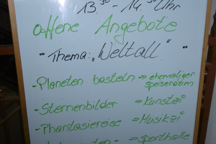 Auf Anfrage der WBS-Schule Dresden haben die angehenden Erzieher*innen Ende November 2023 bei uns im Haus einen Projektnachmittag mit verschiedenen Angeboten zum Thema „Weltall“ geplant, vorbereitet und durchgeführt. Den Kindern hat es viel Spaß gemacht und ein Besuch ist immer toll und spannend.