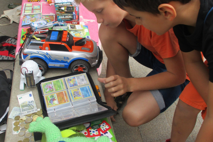 Es war wieder Spielzeugtrödelmarktzeit im Hort. Lang erwartet und wie immer mit viel Aufregung und Spannung davor. Für die neuen 1. Klassen natürlich ein ganz besonderes und unbekanntes Erlebnis. Aber mit Unterstützung ihrer Eltern oder Omas und Opas und natürlich ihrer ErzieherInnen haben sie den Nachmittag super gemeistert. Es gab wieder so viele Stände, liebevoll dekoriert und aufgebaut. Die Verkaufs- und Tauschobjekte wurden präsentiert, teilweise schon vorher beschriftet oder Preise spontan entschieden und ausgehandelt.